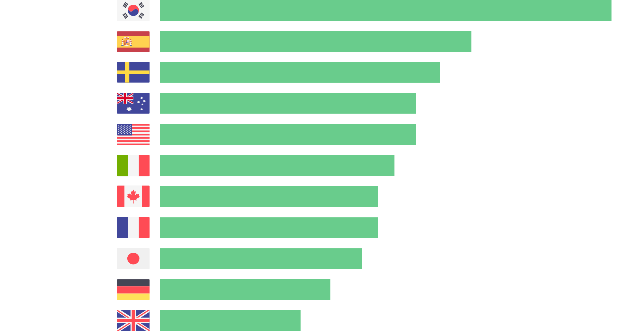 Felmérések szerint Dél-Korea a világelső az elmúlt hónapban podcast-ot hallgató lakosság arányát tekintve, ami náluk 58%, őket követi Spanyolország és Svédország.